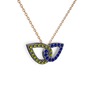 Lab safir ve peridot 925 ayar siyah rodyum kaplama gümüş kolye (40 cm rose altın rolo zincir)