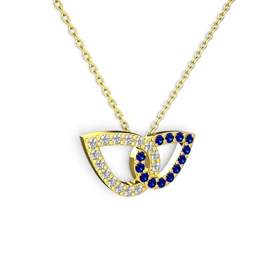 Lab safir ve pırlanta 8 ayar altın kolye (0.154 karat, 40 cm altın rolo zincir)