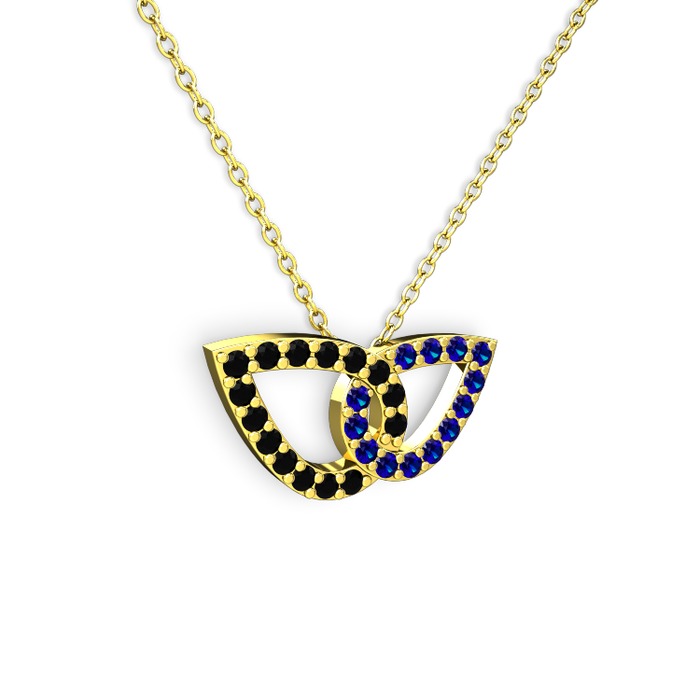 Lab safir ve siyah zirkon 14 ayar altın kolye (40 cm altın rolo zincir)
