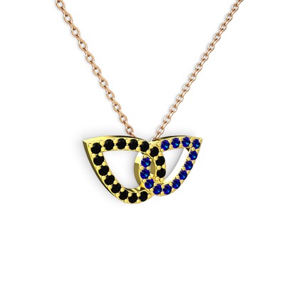 Lab safir ve siyah zirkon 925 ayar altın kaplama gümüş kolye (40 cm rose altın rolo zincir)