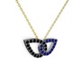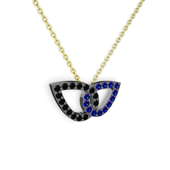 Lab safir ve siyah zirkon 925 ayar siyah rodyum kaplama gümüş kolye (40 cm altın rolo zincir)