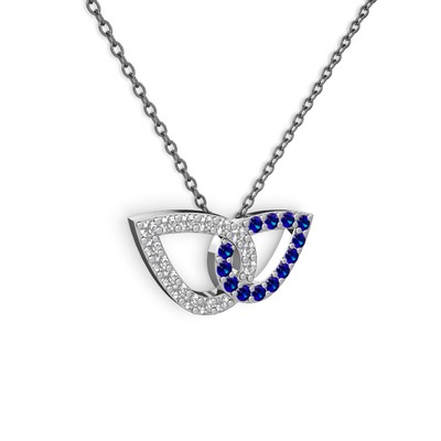 Lab safir ve swarovski 18 ayar beyaz altın kolye (40 cm gümüş rolo zincir)