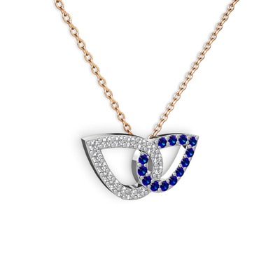 Lab safir ve swarovski 18 ayar beyaz altın kolye (40 cm rose altın rolo zincir)