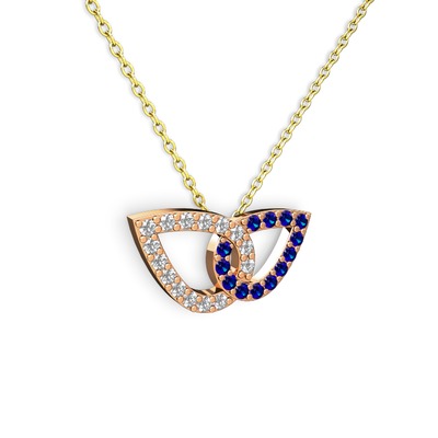 Lab safir ve swarovski 18 ayar rose altın kolye (40 cm altın rolo zincir)