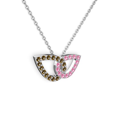 Pembe kuvars ve dumanlı kuvars 8 ayar beyaz altın kolye (40 cm beyaz altın rolo zincir)