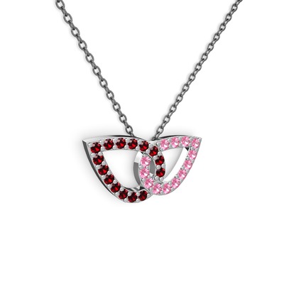 Pembe kuvars ve garnet 18 ayar beyaz altın kolye (40 cm gümüş rolo zincir)