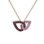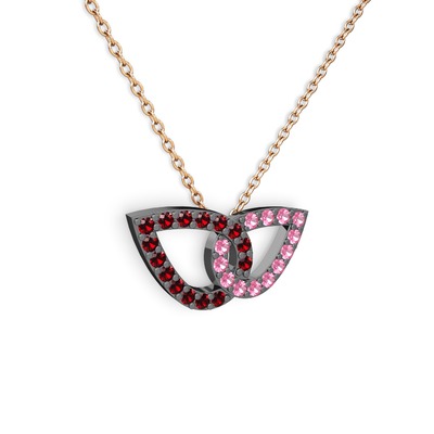 Pembe kuvars ve garnet 925 ayar siyah rodyum kaplama gümüş kolye (40 cm rose altın rolo zincir)
