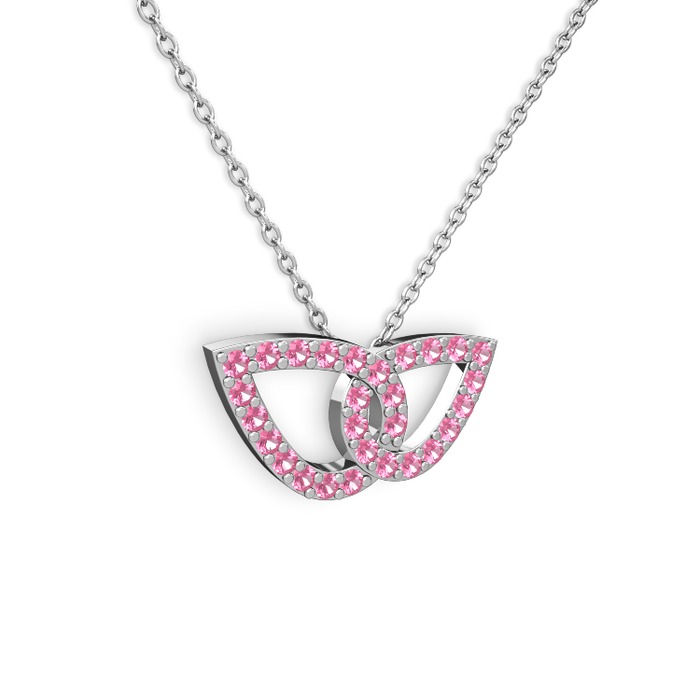 Pembe kuvars 925 ayar gümüş kolye (40 cm beyaz altın rolo zincir)