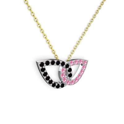 Pembe kuvars ve siyah zirkon 18 ayar beyaz altın kolye (40 cm gümüş rolo zincir)