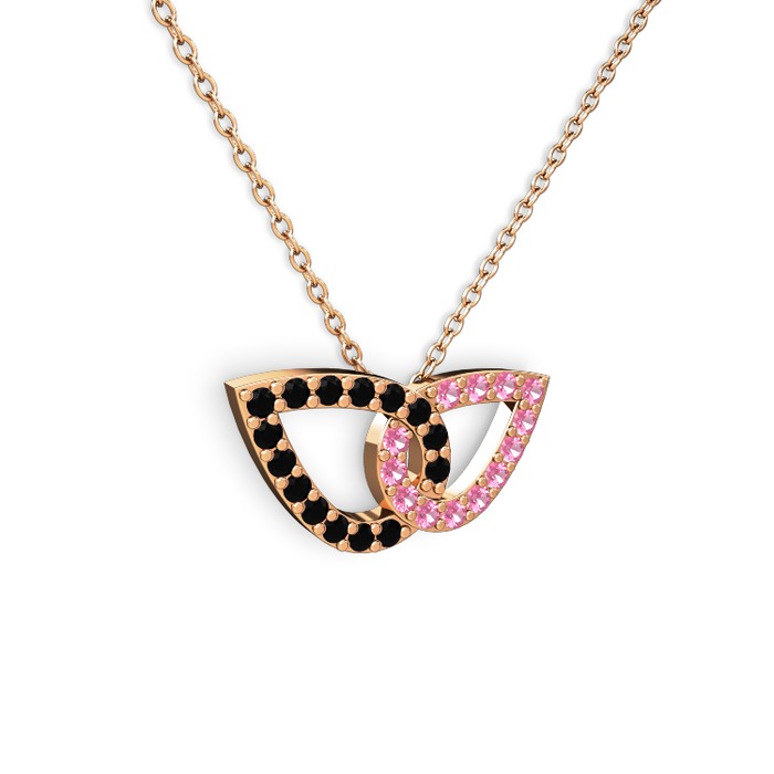 Pembe kuvars ve siyah zirkon 18 ayar rose altın kolye (40 cm rose altın rolo zincir)