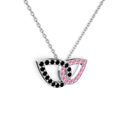 Pembe kuvars ve siyah zirkon 925 ayar gümüş kolye (40 cm beyaz altın rolo zincir)