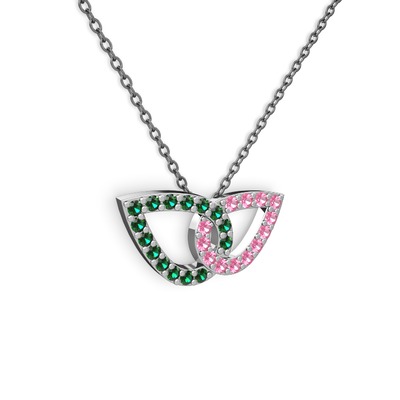 Pembe kuvars ve yeşil kuvars 925 ayar gümüş kolye (40 cm gümüş rolo zincir)