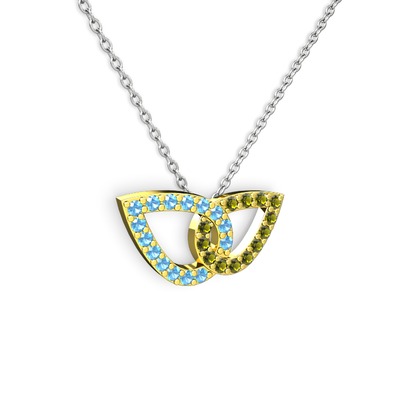 Peridot ve akuamarin 18 ayar altın kolye (40 cm gümüş rolo zincir)