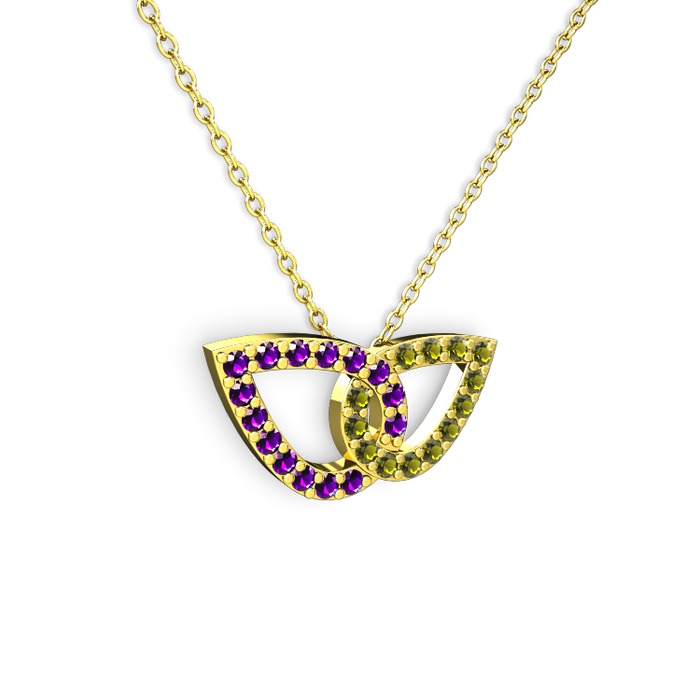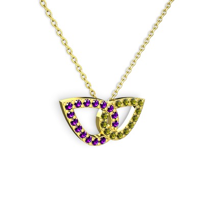 Peridot ve ametist 18 ayar altın kolye (40 cm altın rolo zincir)