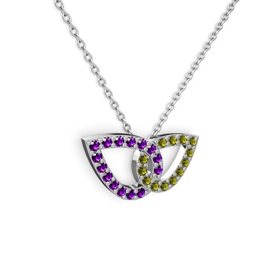 Peridot ve ametist 18 ayar beyaz altın kolye (40 cm beyaz altın rolo zincir)