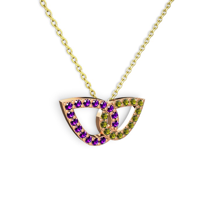 Peridot ve ametist 8 ayar rose altın kolye (40 cm altın rolo zincir)