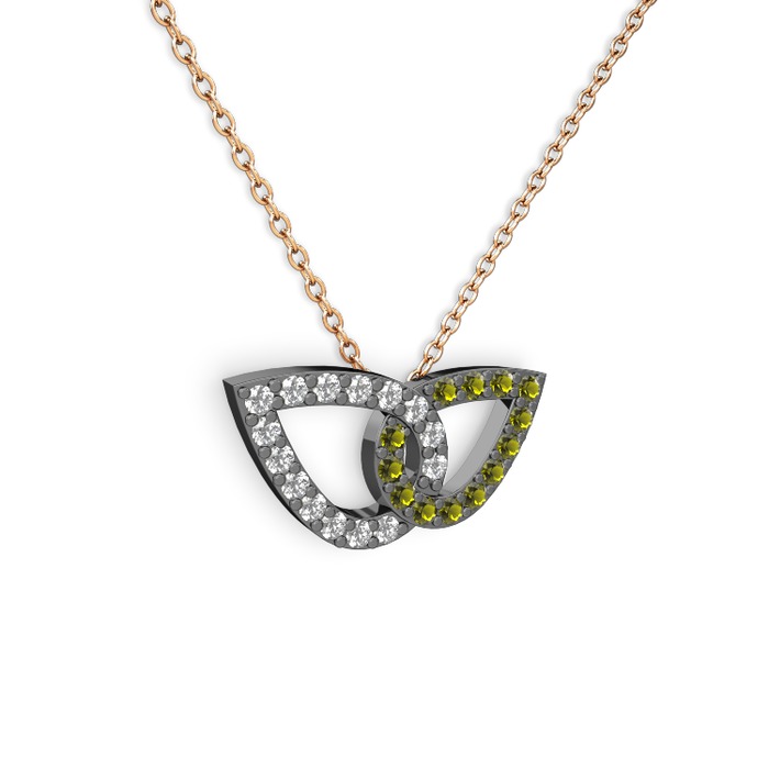 Peridot ve beyaz zirkon 925 ayar siyah rodyum kaplama gümüş kolye (40 cm rose altın rolo zincir)