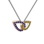 Peridot ve lab safir 925 ayar rose altın kaplama gümüş kolye (40 cm gümüş rolo zincir)
