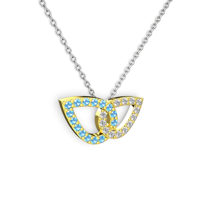 Pırlanta ve akuamarin 18 ayar altın kolye (0.154 karat, 40 cm beyaz altın rolo zincir)