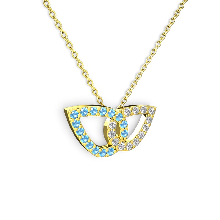 Pırlanta ve akuamarin 8 ayar altın kolye (0.154 karat, 40 cm altın rolo zincir)