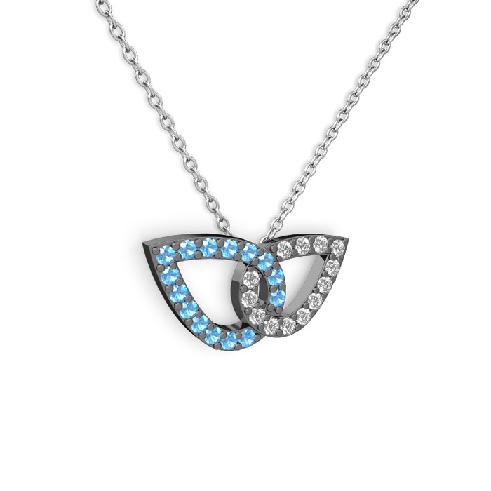 Pırlanta ve akuamarin 925 ayar siyah rodyum kaplama gümüş kolye (0.154 karat, 40 cm gümüş rolo zincir)