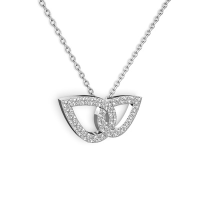 Pırlanta ve beyaz zirkon 18 ayar beyaz altın kolye (0.154 karat, 40 cm beyaz altın rolo zincir)