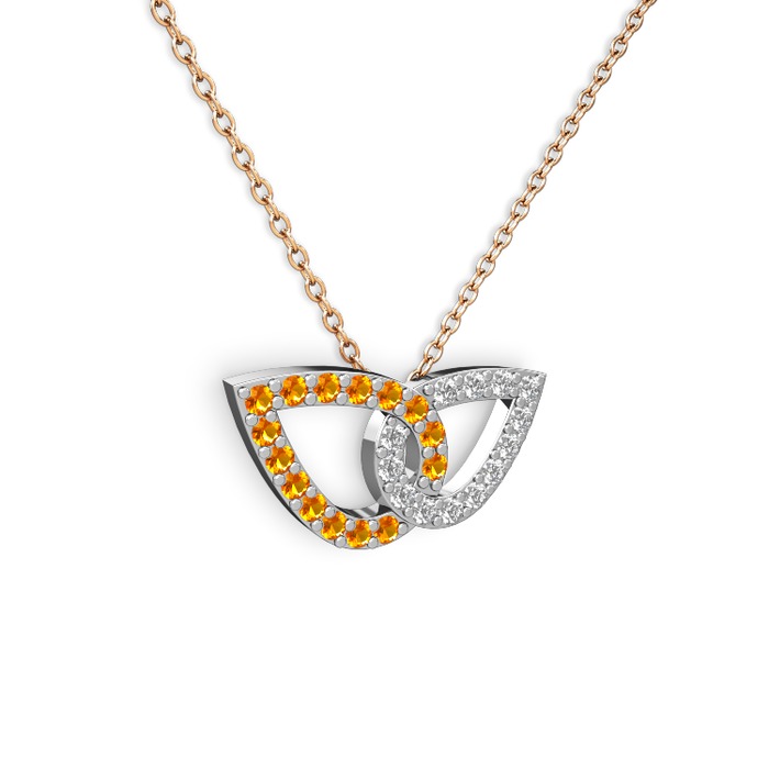 Pırlanta ve sitrin 8 ayar beyaz altın kolye (0.154 karat, 40 cm rose altın rolo zincir)