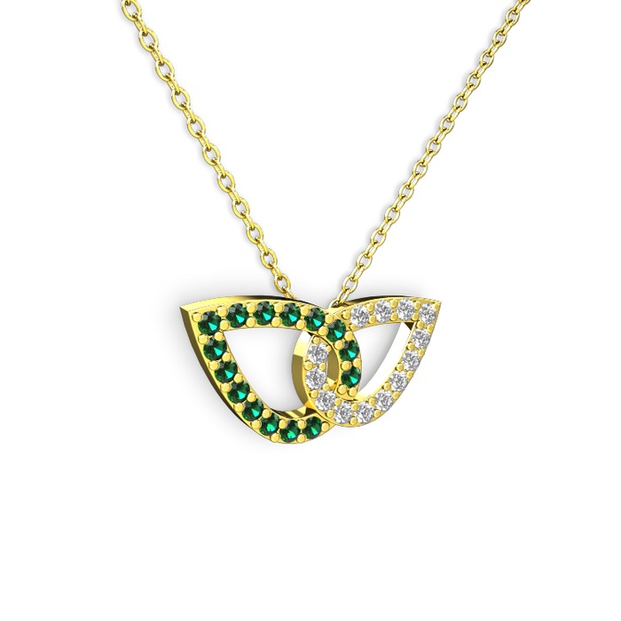 Pırlanta ve yeşil kuvars 14 ayar altın kolye (0.154 karat, 40 cm altın rolo zincir)