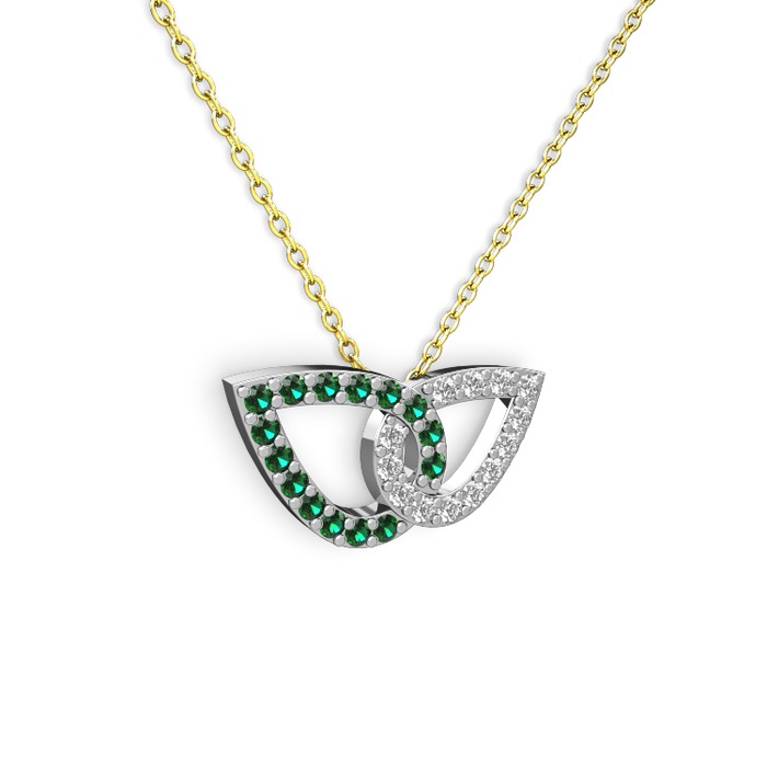 Pırlanta ve yeşil kuvars 18 ayar beyaz altın kolye (0.154 karat, 40 cm altın rolo zincir)