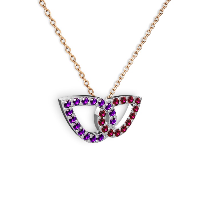 Rodolit garnet ve ametist 925 ayar gümüş kolye (40 cm rose altın rolo zincir)