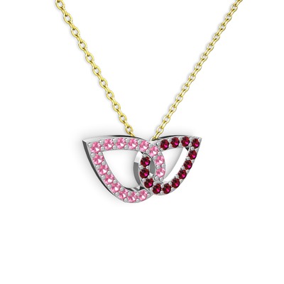 Rodolit garnet ve pembe kuvars 8 ayar beyaz altın kolye (40 cm altın rolo zincir)