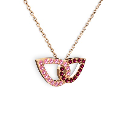 Rodolit garnet ve pembe kuvars 925 ayar rose altın kaplama gümüş kolye (40 cm gümüş rolo zincir)