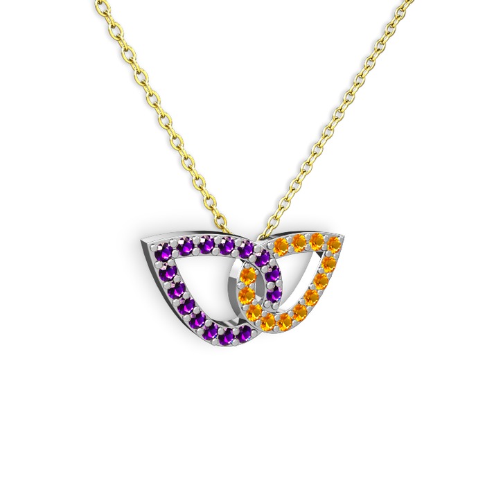 Sitrin ve ametist 18 ayar beyaz altın kolye (40 cm gümüş rolo zincir)