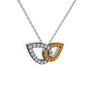 Sitrin ve beyaz zirkon 925 ayar siyah rodyum kaplama gümüş kolye (40 cm beyaz altın rolo zincir)
