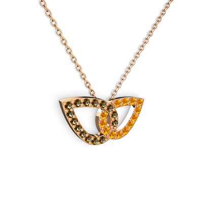 Sitrin ve dumanlı kuvars 18 ayar rose altın kolye (40 cm rose altın rolo zincir)