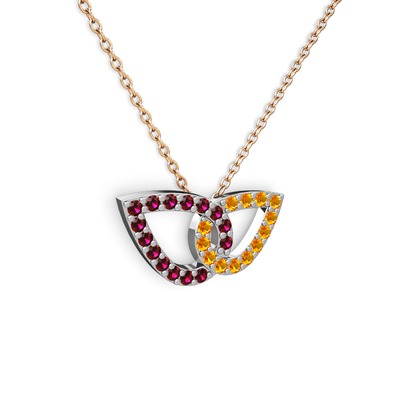 Sitrin ve rodolit garnet 14 ayar beyaz altın kolye (40 cm rose altın rolo zincir)
