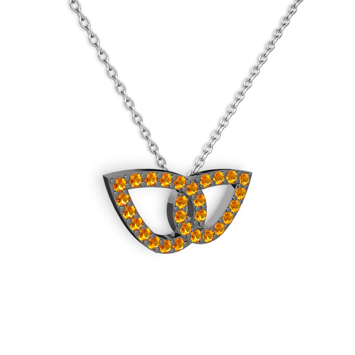 Sitrin 925 ayar siyah rodyum kaplama gümüş kolye (40 cm beyaz altın rolo zincir)