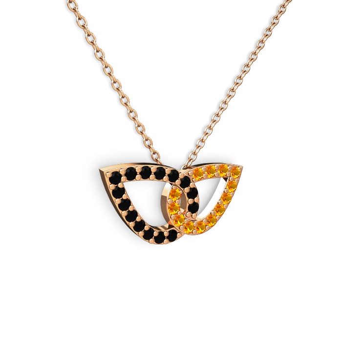 Sitrin ve siyah zirkon 18 ayar rose altın kolye (40 cm gümüş rolo zincir)