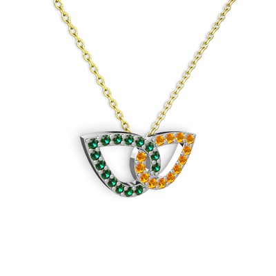 Sitrin ve yeşil kuvars 925 ayar gümüş kolye (40 cm altın rolo zincir)
