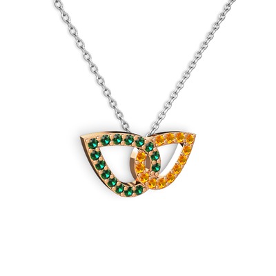 Sitrin ve yeşil kuvars 925 ayar rose altın kaplama gümüş kolye (40 cm beyaz altın rolo zincir)