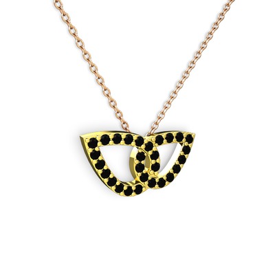 Siyah zirkon 18 ayar altın kolye (40 cm rose altın rolo zincir)