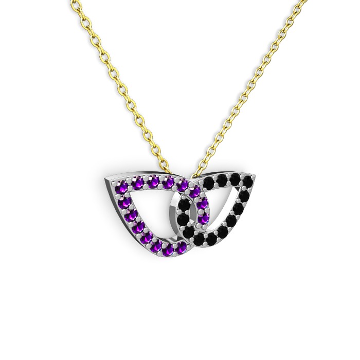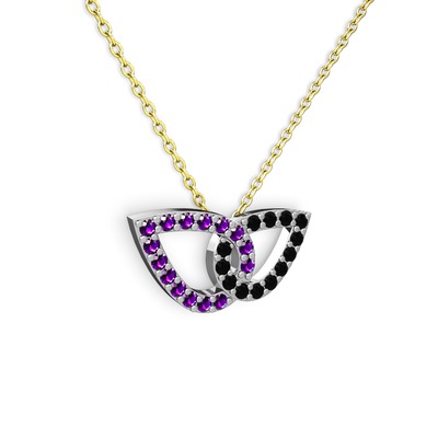 Siyah zirkon ve ametist 14 ayar beyaz altın kolye (40 cm altın rolo zincir)