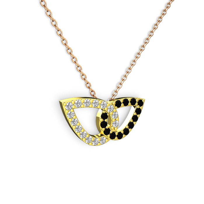 Siyah zirkon ve beyaz zirkon 8 ayar altın kolye (40 cm gümüş rolo zincir)