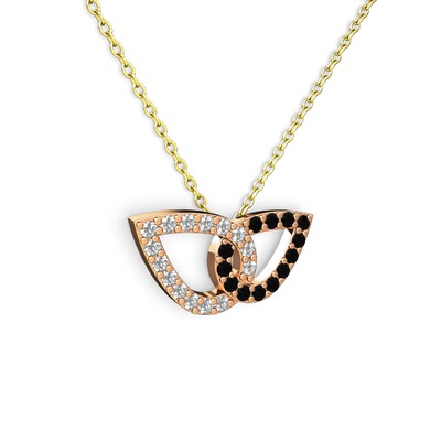 Siyah zirkon ve beyaz zirkon 8 ayar rose altın kolye (40 cm altın rolo zincir)