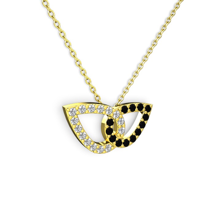 Siyah zirkon ve beyaz zirkon 925 ayar altın kaplama gümüş kolye (40 cm gümüş rolo zincir)