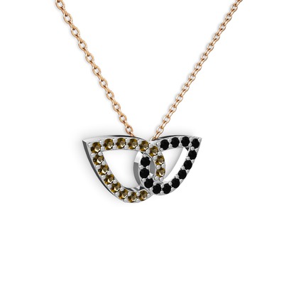 Siyah zirkon ve dumanlı kuvars 18 ayar beyaz altın kolye (40 cm rose altın rolo zincir)