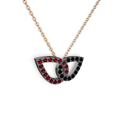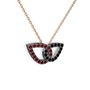 Siyah zirkon ve garnet 925 ayar siyah rodyum kaplama gümüş kolye (40 cm rose altın rolo zincir)