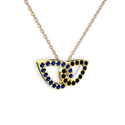 Siyah zirkon ve lab safir 18 ayar altın kolye (40 cm rose altın rolo zincir)