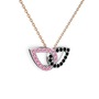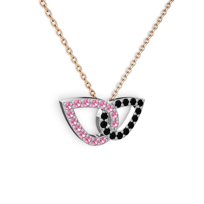 Siyah zirkon ve pembe kuvars 8 ayar beyaz altın kolye (40 cm gümüş rolo zincir)