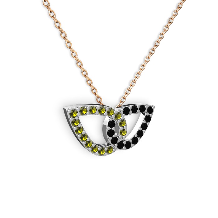 Siyah zirkon ve peridot 14 ayar beyaz altın kolye (40 cm rose altın rolo zincir)